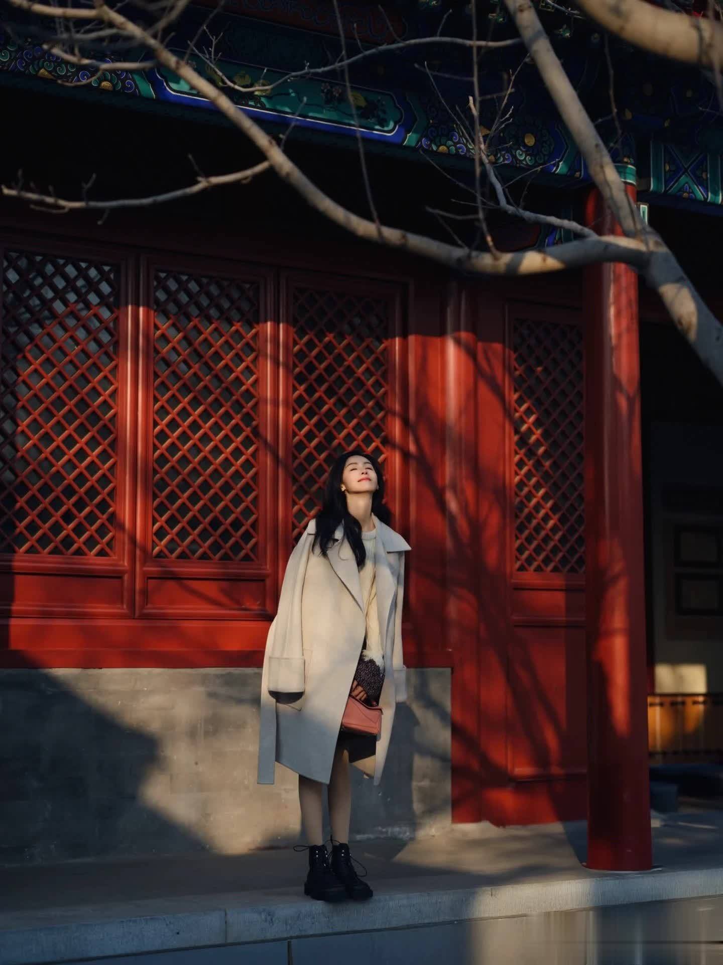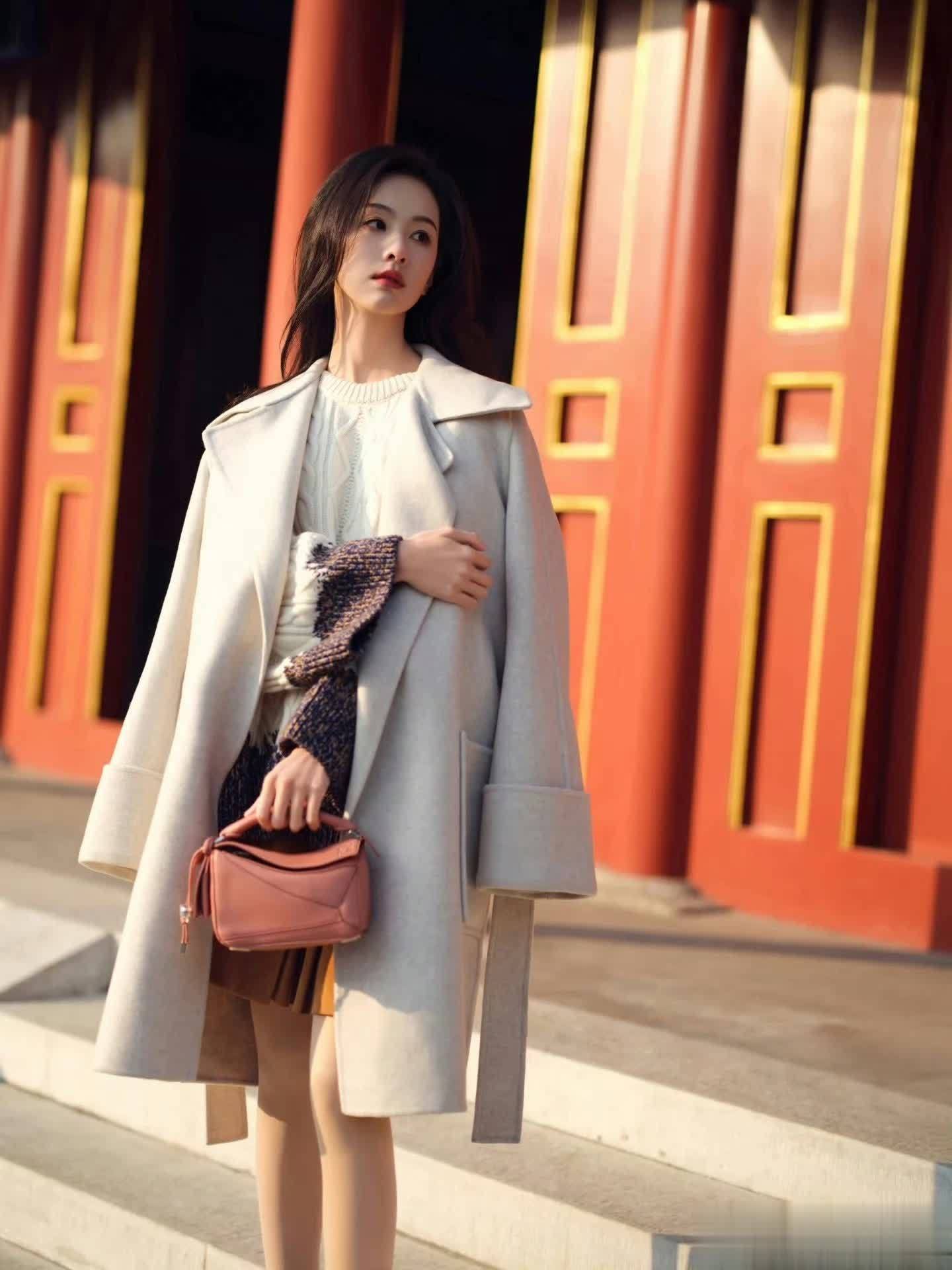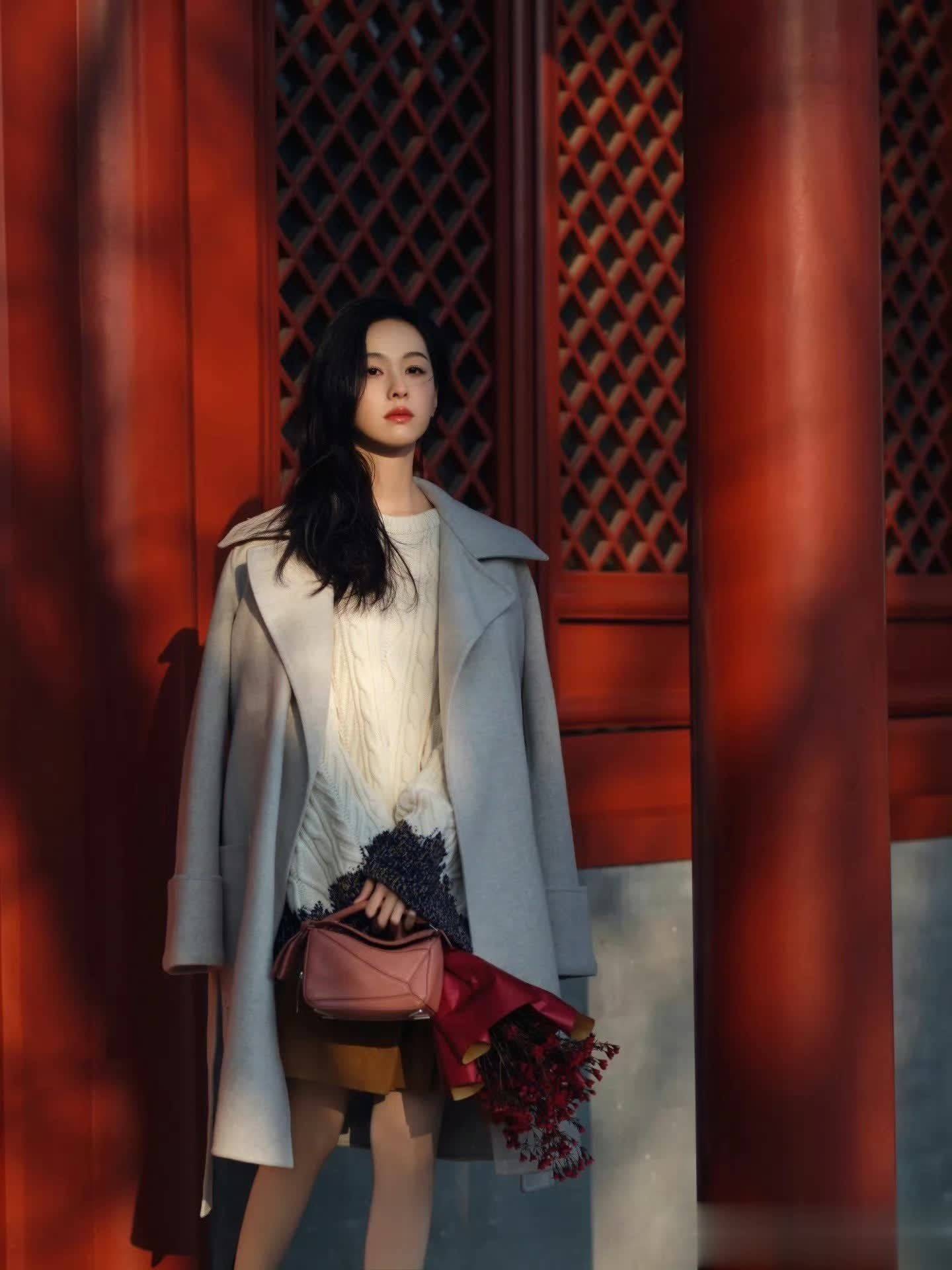 最近刷到陈都灵的一组街拍,直接被她的“早春穿搭公式”圈粉了!浅灰羊绒大衣+白色绞花毛衣+棕色短裙+裸色丝袜+黑色马丁靴,看似简单的组合,却把“贵气、温柔、活力”全揉了进去,连背景的红墙都在帮她“发光”。这组搭配不仅适配早春气温,还能轻松hold住通勤、约会、逛街各种场景,照着穿绝对不出错!